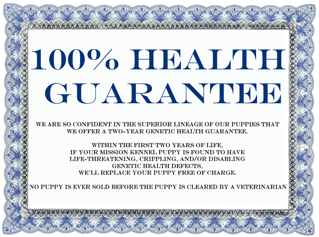 The Mission Kennel Goldendoodle 2 Year Health Guarantee